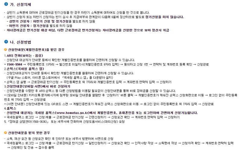 - 근로장려금 반기 신청은 온라인, 스마트폰, 전화로 모두 가능합니다.