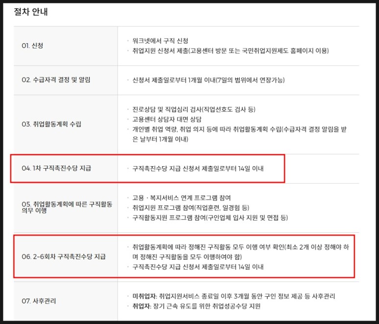 - 취업활동계획에 따라 정해진 활동을 모두 이행해야 하며, 지급 신청서 제출일로부터 14일 이내에 지급합니다.